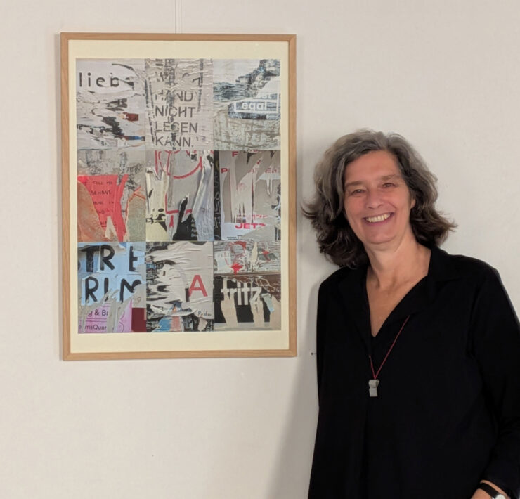 Ein klar in den Grenzen seiner Struktur ruhendes Format wie der (sagen wir:) Theoriecomic von Ilse Kilic hat es da viel leichter als selbst so etwas vermeintlich Simples wie Brigitta Höplers ganzseitige Collagen – je nur ein Bild, mit zwei bis drei hineinmontierten Zeilen Text, und stets bieten die Gebilde eine knackige, prägnante Kippfigur zwischen ihren beiden Dimensionen. Doch der Beitrag ist überschrieben mit „aus: (W)ORTE FOTONOTIZEN“, und schon weiß ich nicht mehr: Lese ich fünf einzelne Bildgedichte, die zwar, wie das „aus:“ in der Überschrift sagt, einer umfangreicheren Sammlung angehören, aber die doch je in sich selbst ruhen, wie der Leseeindruck mir versichert? Oder bin ich gefordert, über diese fünf Seiten eine größere Story zu rekonstruieren?