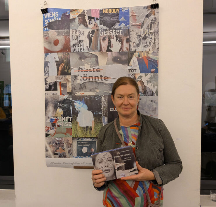 Als eine der vertretenen Autor*innen liest dann Valerie Zichy – und nicht nur aus ihrem poetisch-poetologischen Beitrag im Buch, welch Letzterer es aber in sich hat, wenn wir bedenken, dass es ums Schreiben selbst geht: Die Metapher der Sonnenblume, die so und so weit wächst, dann einknickt, denn das Licht „reicht nicht esreichtnichtesreichtnicht“. Die Autorin endet mit einem Prosastück über die biografischen Wurzeln des Schreibenkönnens, Redenkönnens im Erinnern von (bestimmten) Verstorbenen: „Denke manchmal lieber an die Landschaft, die einmal ein Hier war. (…) Kannte dich nur übersetzt. (…) Weiß nur, du hast ,Lokomotive‘ zu großen Wildschweinen gesagt.“