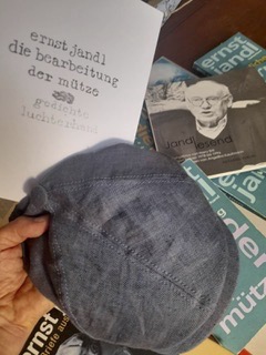 darmstadt, neuwied, luchterhand 1978: geradezu unscheinbar nüchtern wirkt ernst jandls gedichtband „die bearbeitung der mütze“ auf mich, der immerhin nicht weniger als die praxis des schreibens, den begriff des literarischen und die möglichkeiten sprachlicher wahrnehmung revolutioniert hat. das titelgedicht beginnt so: „ich den kapp nehm / den kapp den ich auf kopf nehm / den kapp sein eng eng / den kapp sein eng eng / den kapp sein eng eng / ich stecken knie rein…“ und ich bemerke, wie schwer es mir fällt, das gedicht nicht vollständig zu zitieren, weil sich unmittelbar eine art suchteffekt und darüber hinaus eine nachahmungslust einstellt.