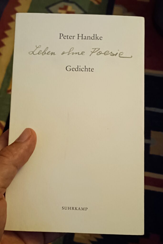 Peter Handkes Gedicht an die Dauer gehört zu den Texten, die man immer wieder lesen kann – und immer wieder auf sehr schöne Weise nicht versteht. Mir jedenfalls geht es so. Es handelt sich um ein Langgedicht, ursprünglich erschienen 1986 als eigenständiges Buch. Ich besitze lediglich den 2007 erschienenen Sammelband Leben ohne Poesie, in dem es abgedruckt ist. Alle paar Jahre lese ich dieses rätselhafte Gedicht, weil es mir in den Sinn kommt, und mache mich daran, es zu ergründen, auch im letzten Sommer war es wieder so weit.